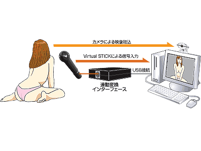 女性の口や手、挿入などの微妙な動き迄を何と7個ものモータで映像と完全連動を実現しました。
